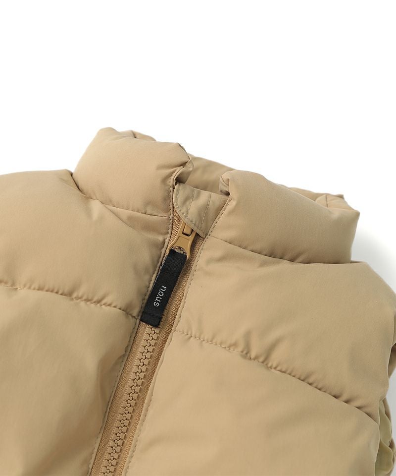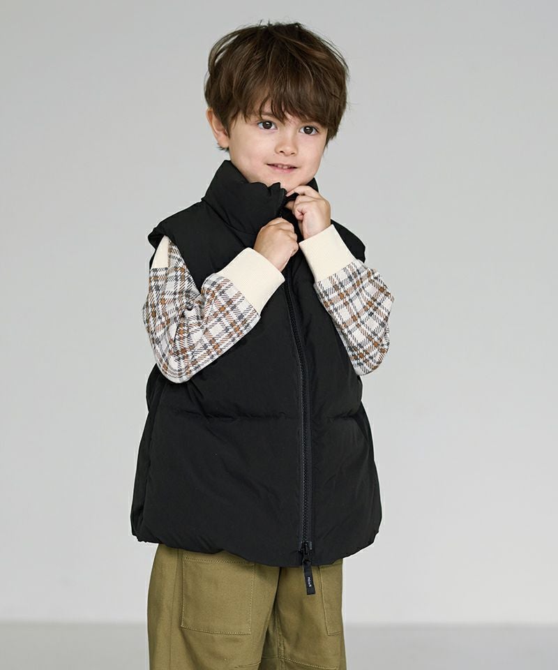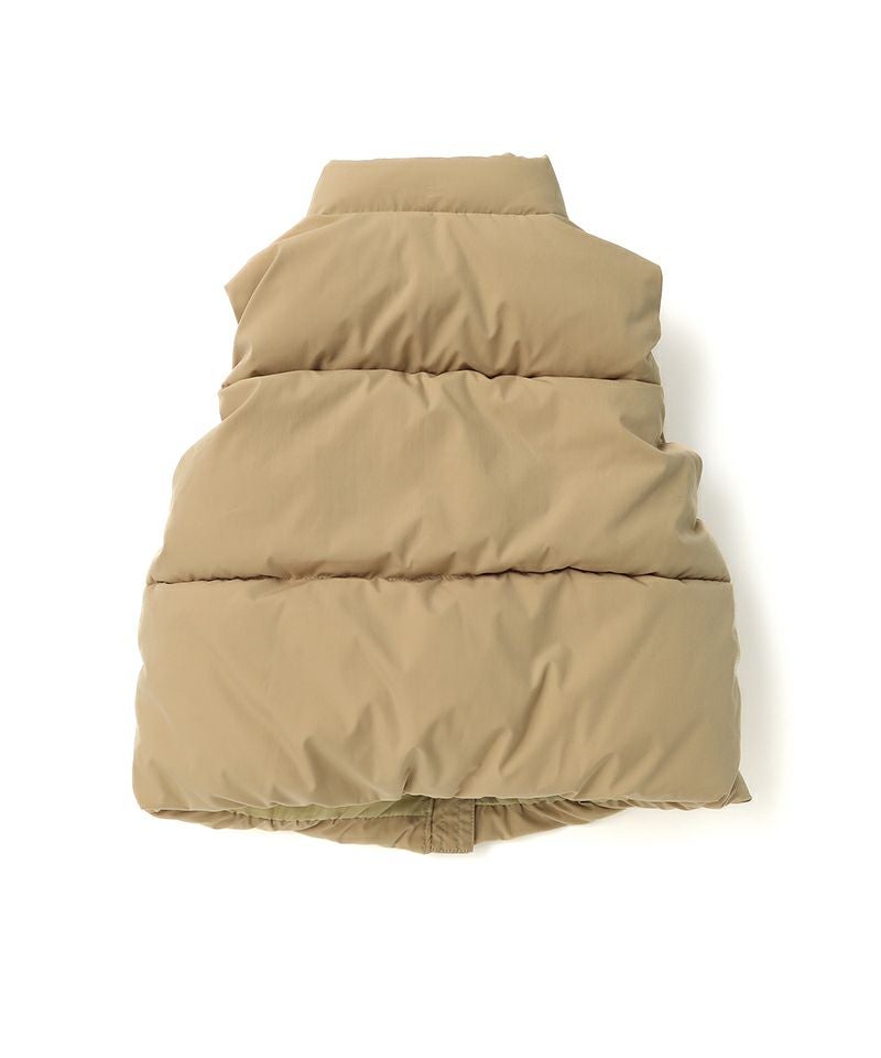 ふかふか綿の立体感と高級感ある撥水加工タフタのベストです☆Wジップ仕様なのでコーディネートに合わせてシルエットが作りやすく、体温調節もしやすい便利アイテムです!シルエットや衿のボリューム感も素敵で、大人サイズがほしい!とスタッフ人気も高いアイテムです☆