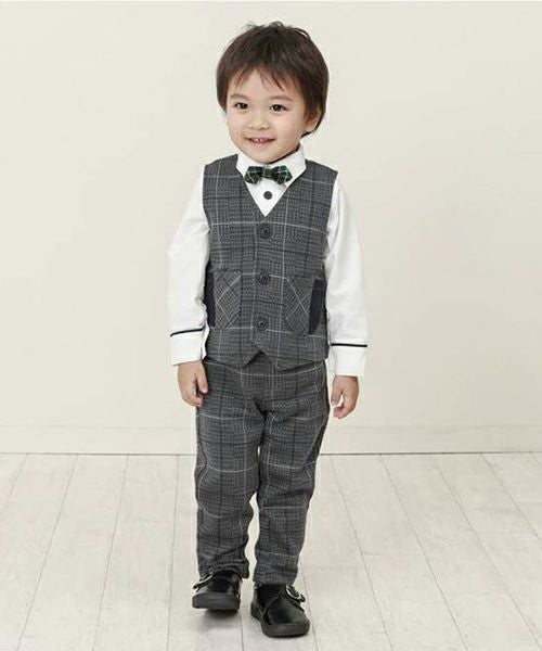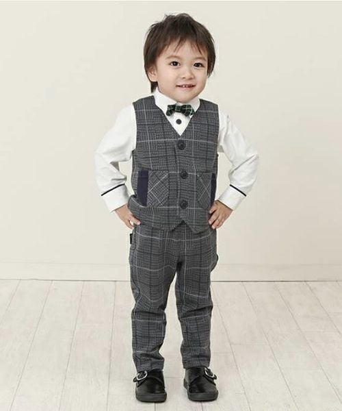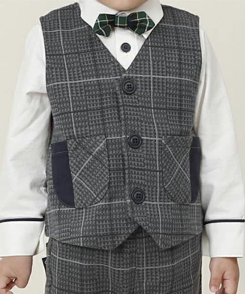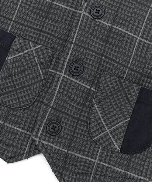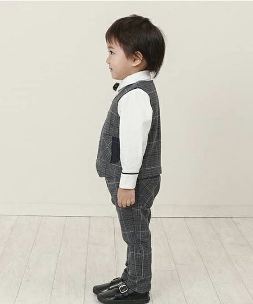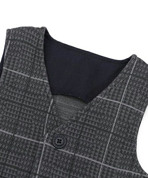 ■ブランド La Chiave ■アイテム ベスト ■素材 本体/綿90%・ポリエステル7%・ポリウレタン3% 無地部分/綿100% ジャガードチェック×ツイル ■サイズ 80/90/95/100/110/120/130