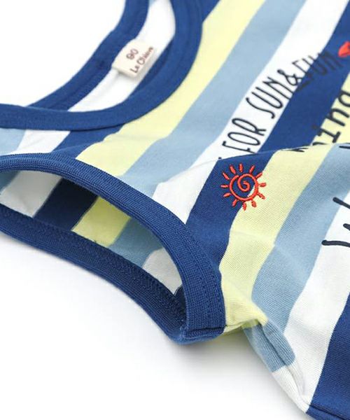 ■ブランド La Chiave ■アイテム Tシャツ ■素材 本体/ポリエステル65%・綿35% ブルー…裾部分/綿100% ネイビーブルー…裾部分/綿80%・ポリエステル20% 天竺×スパンフライス ■サイズ 80/90/95/100/110/120/130