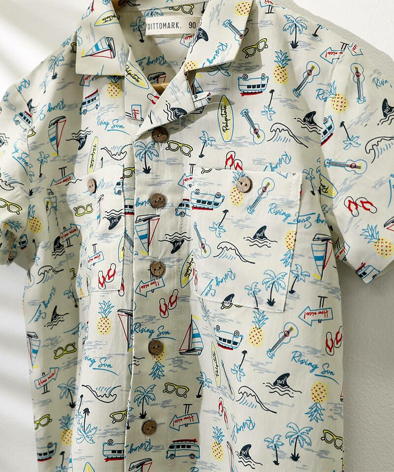 ■ブランド DITTOMARK. ■アイテム 半袖シャツ ■素材 レーヨン87%・再選繊維(セルロース)13% 綿レーヨン ■サイズ 80/90/100/110/120/130/140 ■洗濯表示 取扱い表示記号について