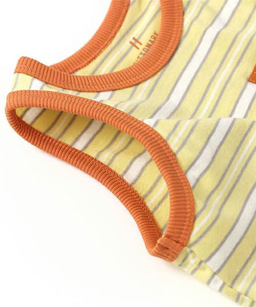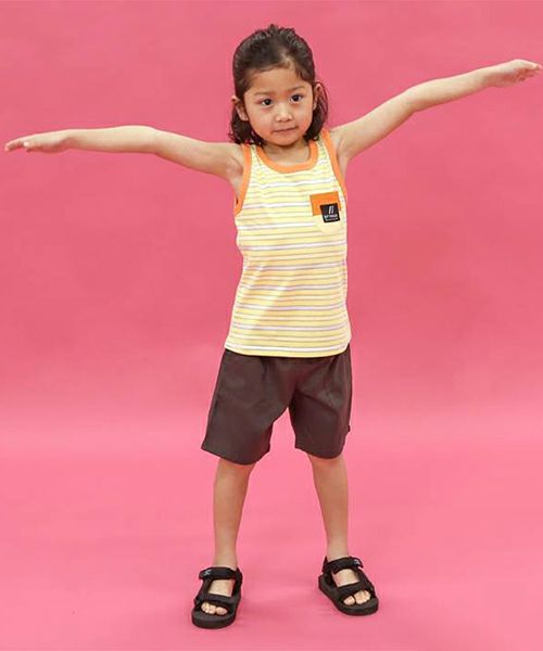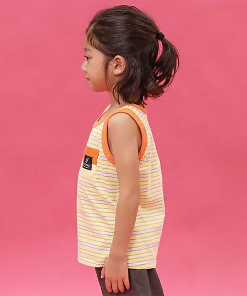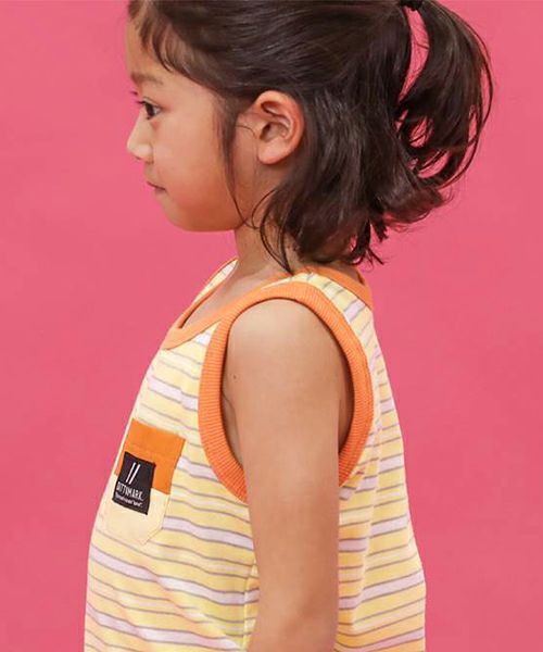 マルチボーダーがおしゃれなタンクトップ。異素材ポケットや配色のバインダーがアクセントに◎