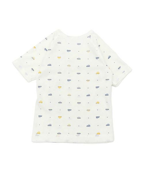 可愛く並んだくるま柄プリントのフライス短肌着♪更に赤ちゃんの身体をやさしく包み込む寸法へリニューアル。収縮性のあるフライス素材の短肌着です。たくさんの可愛いプリント柄で選ぶ楽しさも増えました。