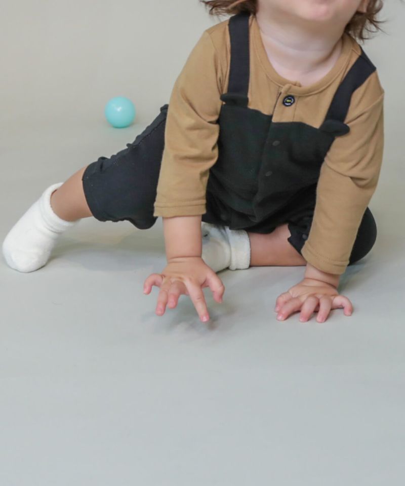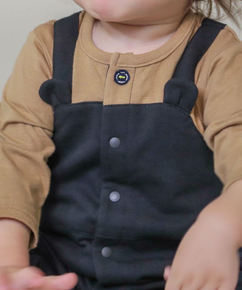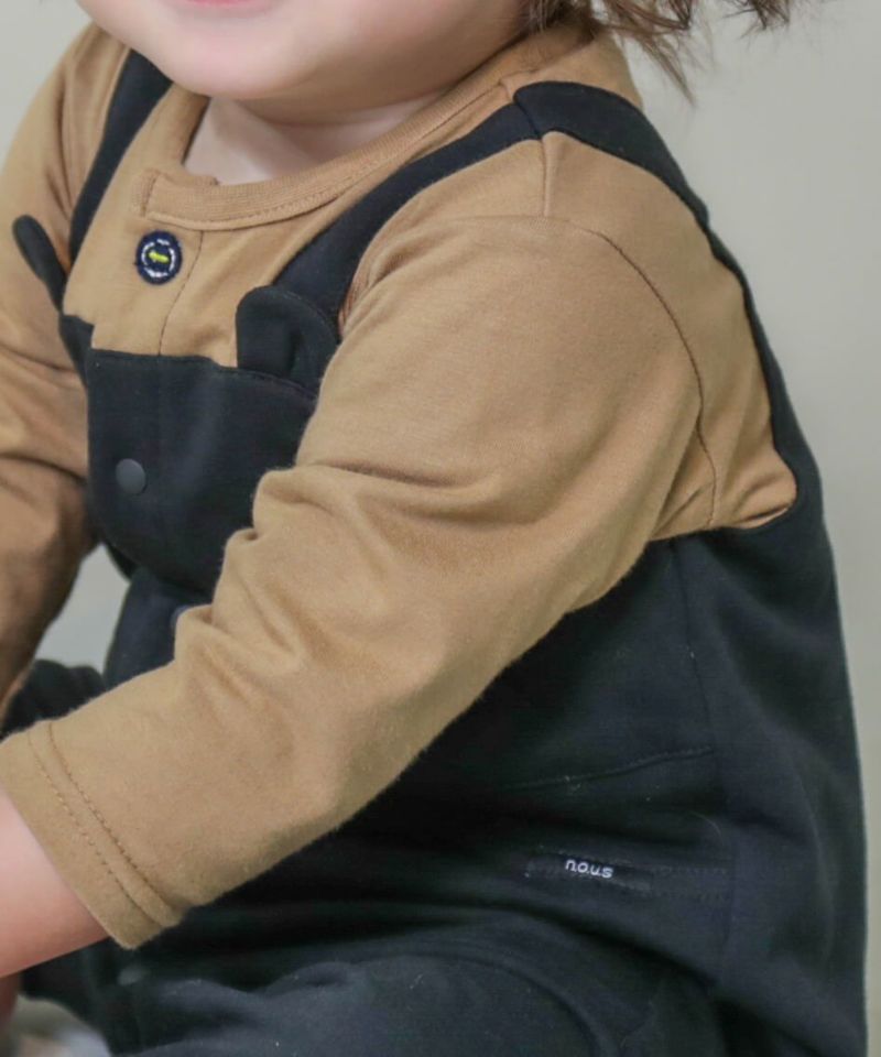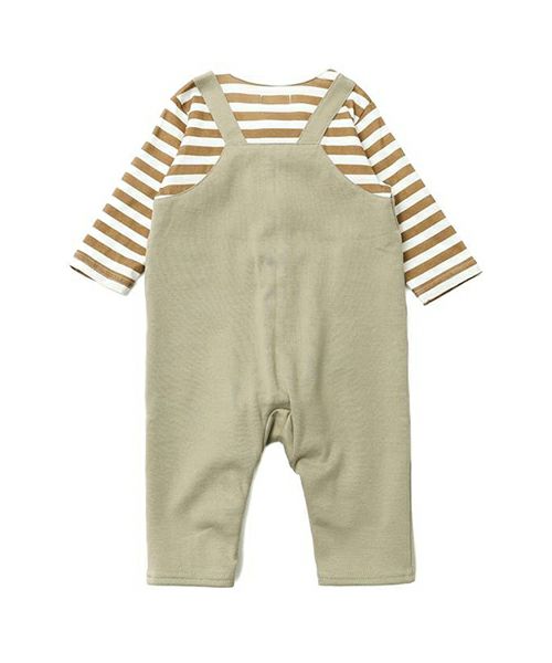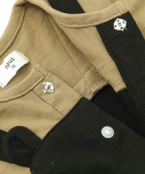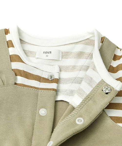 ■ブランド n.o.u.s ■アイテム カバーオール ■素材:衿ぐり部分/綿95%・ポリウレタン5% チャコール…サロペット部分/綿93%・ポリウレタン7% Tシャツ部分/綿100% カーキ…本体/綿93%・ポリウレタン7% ミニ裏毛×天竺×ブロード ■サイズ 70/80