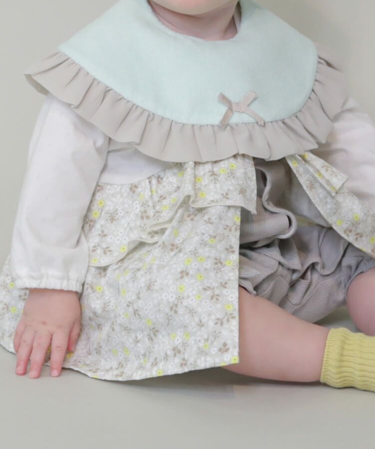 ■素材:本体表地/綿77%・ポリエステル23% 本体裏地/綿100% フリル布部分/ポリエステル100% パイル×ドットプリントクロス