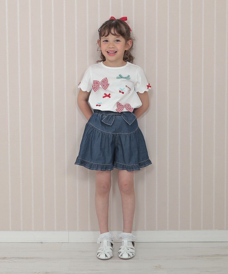 トップスとのシンプルなコーデが楽しくなるリボンウエストとたっぷりギャザーが可愛いキュロットです☆柔らかく軽い布帛デニムの風合いも素敵に仕上がりました。コーデしやすいお素材で、大活躍間違いなしのアイテムです♪