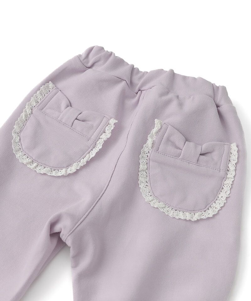 折り返したときの裾レースやリボンポケット、チェリー刺繍など、ガーリーなポイントをちりばめた履き心地の良いパンツです。細すぎないながらも、すっきりとした綺麗なシルエットもおすすめポイントです☆