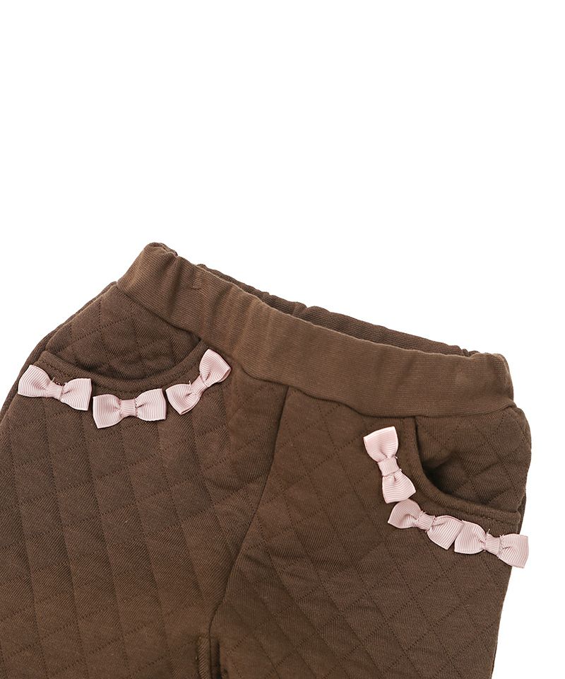 ■ブランド Biquette Club ■アイテム ロングパンツ ■素材 本体/綿35%・レーヨン34%・ポリエステル31% ウエスト部分/綿96%・ポリウレタン4% レース部分/綿96%・ポリエステル4% リボン部分/ポリエステル100% ニットキルト×スパンフライス ■サイズ 80/90/100/110/120/130/140 ■洗濯表示 取扱い表示記号について