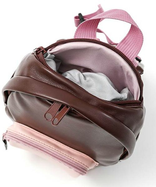 ■ブランド Piccolo ■アイテム リュックサック ■素材 表地/合成皮革 本体裏地…フード表地・裏地・テープ部分/ポリエステル100% フェイクスエード×ポリエステル生地×ポリエステルタフタ ■サイズ フリー
