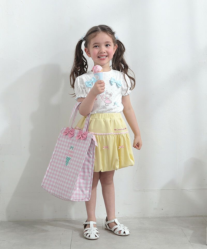 ギンガムチェックにうさみみアイスクリームロゴの刺繍をあしらったキュートな保冷バッグ。内側は保冷仕様で保冷剤を入れることが出来るポケット付き。2Lのペットボトルもすっぽり入るサイズでピクニックやおでかけはもちろん、普段のお買い物バッグとしても大活躍です!お子さまとさりげなくプチリンクコーデに♪