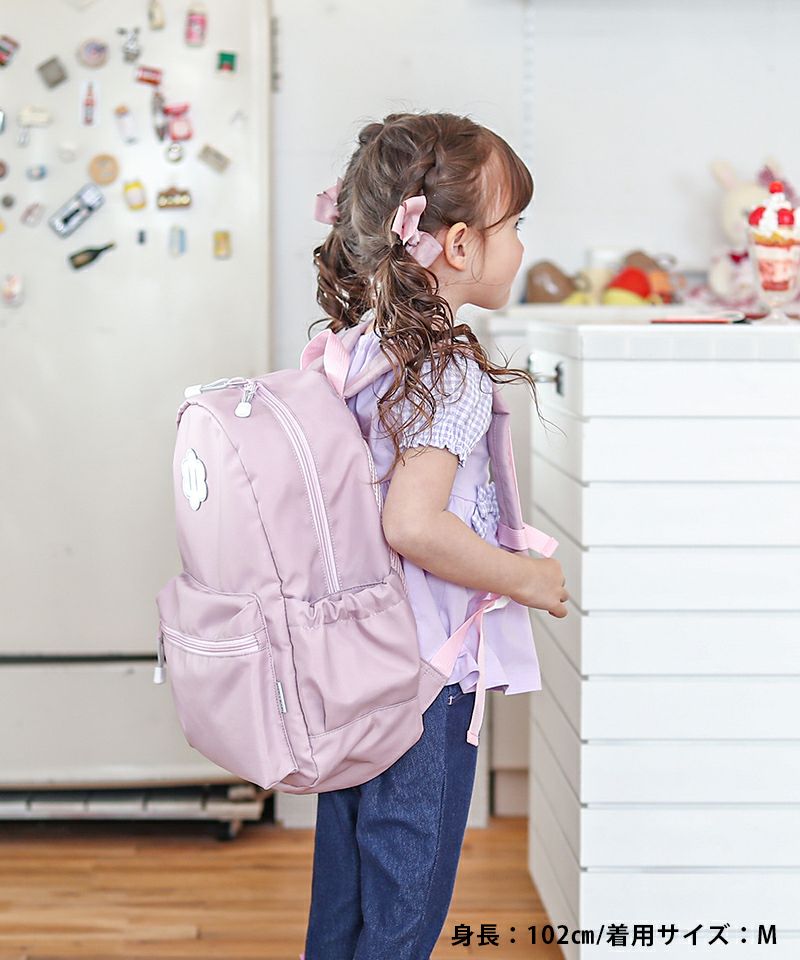 ■カラー展開:クロ/クリーム/ベージュ/ピンク/ライトピンク/サックス ※この商品は生地に撥水加工(はっ水加工)を施しています。繰り返し洗濯するとはっ水効果が低下します。また、雨天時の長時間の使用は縫い目及び布部分より、中へ水が入る場合がありますのでご注意ください。 ※お名前タグ付き ※Sサイズ:9L / Mサイズ:11L ※画面上の色はブラウザや設定により、実物とは異なる場合がございます。