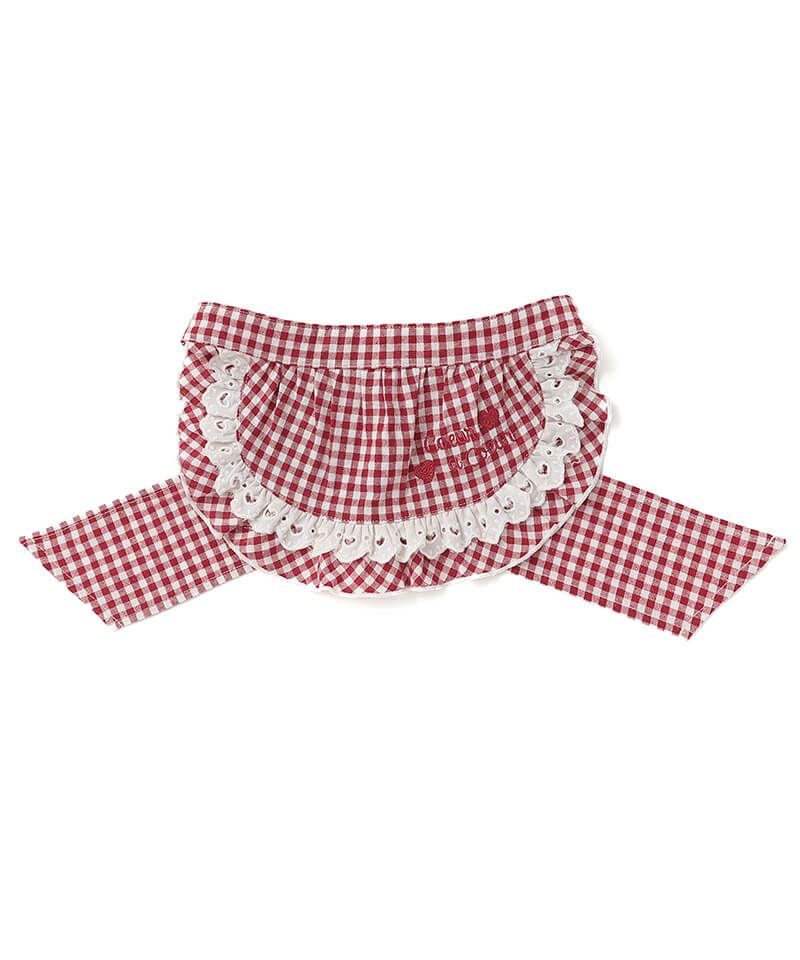ギンガムチェックのフリルにはしごレースとたっぷりのリボンをトッピングし、