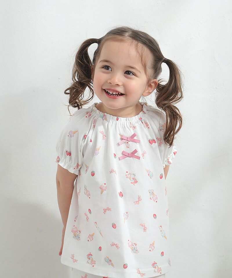 ■ブランド coeur a coeur ■アイテム パジャマ ■素材 上衣…本体/綿100% リボン部分/ポリエステル100% 下衣…本体/綿100% ウエスト部分/綿98%・ポリウレタン2% リボン部分/ポリエステル100% 天竺 ■サイズ 90/100/110 ■洗濯表示トップス ボトムス 取扱い表示記号について