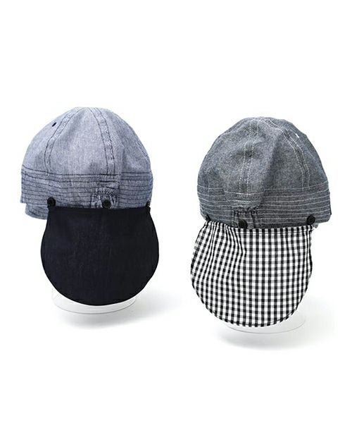 ■ブランド La Chiave ■アイテム 帽子 ■素材 本体/ポリエステル65%・綿35% タレ部分/綿100% ヒッコリー×ダンガリー×ギンガムチェック×ブロード ■サイズ 48/50/52/54/56