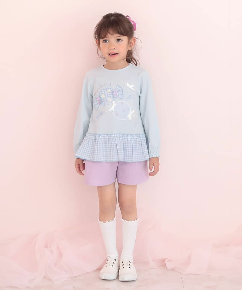 お花にリボン、チュールなど女の子の大好きが詰まったキャンディモチーフAラインTシャツ♪ギンガムチェックのフリルが愛らしさたっぷり♪お袖はアウターが羽織りやすいプレーンなシルエットなので、重ね着の時期も使い勝手の良いアイテムです。