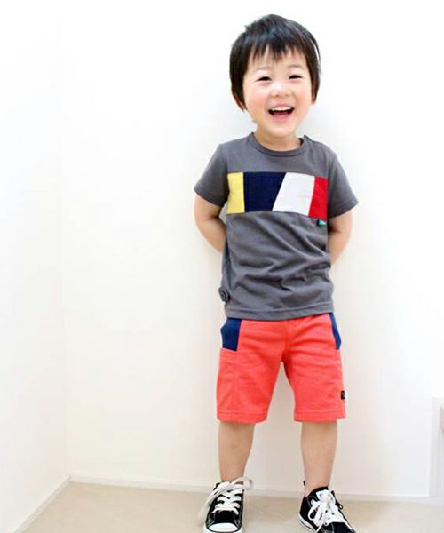 ■ブランド La Chiave ■アイテム Tシャツ ■素材 本体/ポリエステル65%・綿35% チャコール…配色部分/綿100% レッド…白配色部分/綿90%・レーヨン10% その他配色部分/綿100% 天竺×スパンフライス×ブロード ■サイズ 80/90/95/100/110/120/130