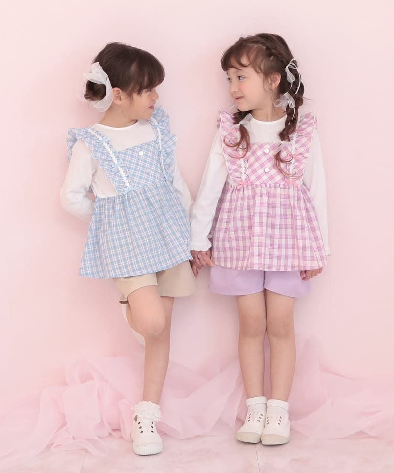 モデル身長:109cm / 着用サイズ:110size/サックス