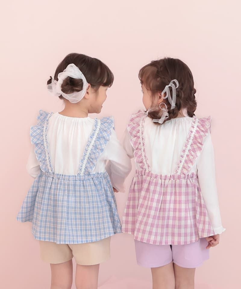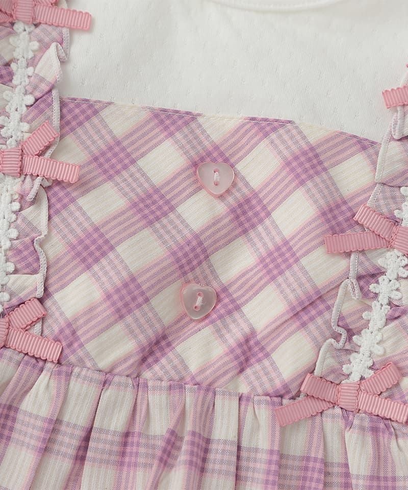 春らしい軽やかなチェックとレース、リボンの組み合わせが素敵なチュニック♪すっぽりとかぶりで着られる仕様もうれしいポイントです!バックスタイルのゴム入り設計は着やすさはもちろん、スタイルアップできる切替位置にもこだわっています☆