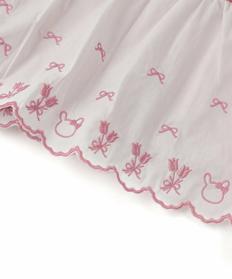 ピンクが優しい色合いで、上品で可愛らしいです。裾のうさぎちゃん刺繍も可愛いです。