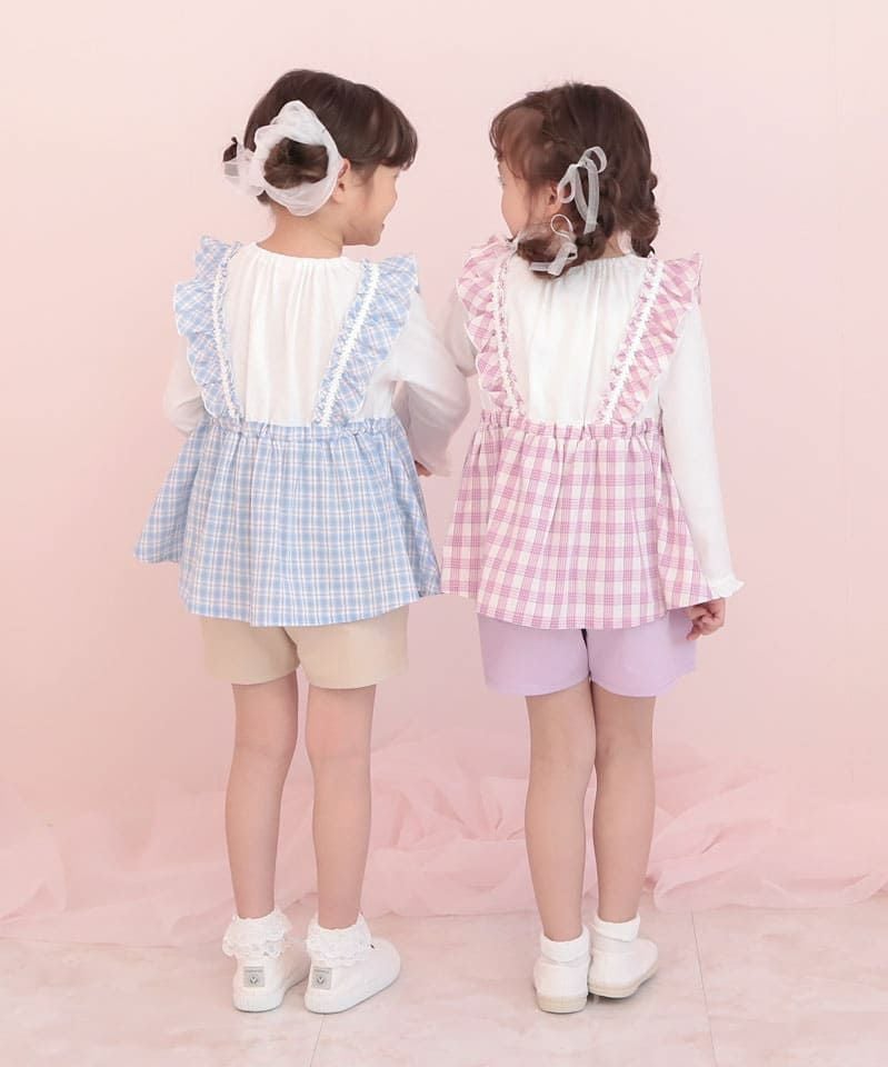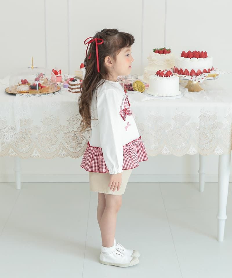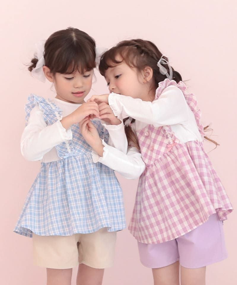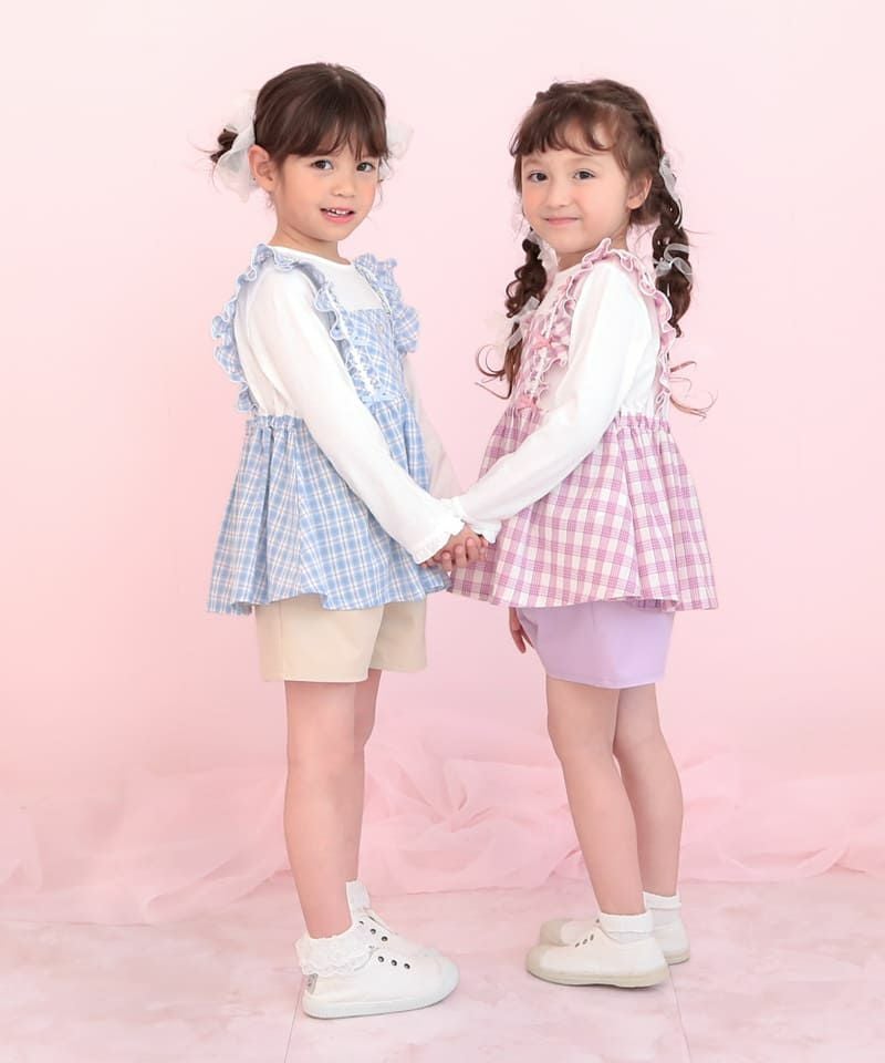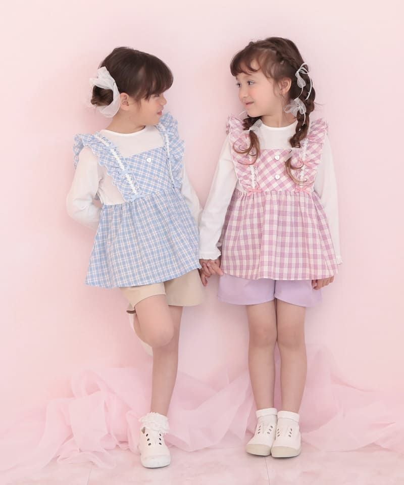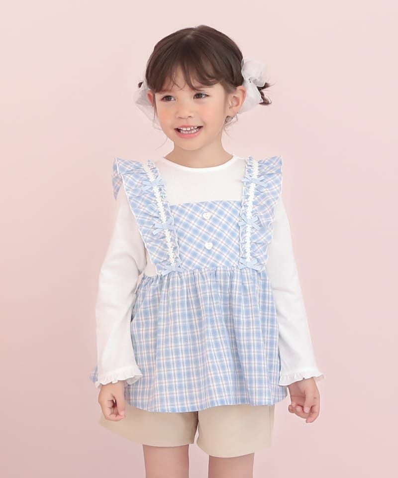 coeur a coeur チューリップギンガムチェックエプロン付きロンパースセット