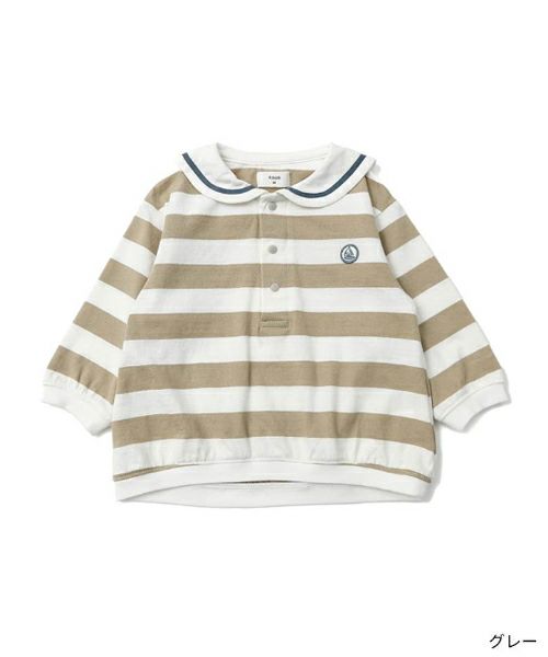 ■カラー展開:グレー/ネイビーブルー ※お名前タグ付き。 モデル身長:82cm / 着用サイズ:80size ※カラーの注文間違えがないようご注意下さい。 ※グレーの色味は、画像のようなベージュに近い色味になります。 ※画面上の色はブラウザや設定により、実物とは異なる場合がございます。ご了承の上ご注文下さい。