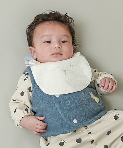 ■ブランド n.o.u.s ■アイテム スタイ ■素材 パイル地部分/綿73%・ポリエステル27% ドット柄布部分/綿100% ストライプ柄布部分/ポリエステル85%・綿15% パイル×ストライプクロス×スムース ■サイズ ベビー