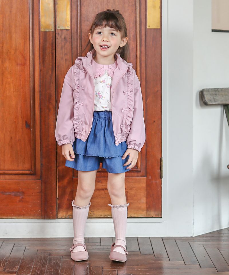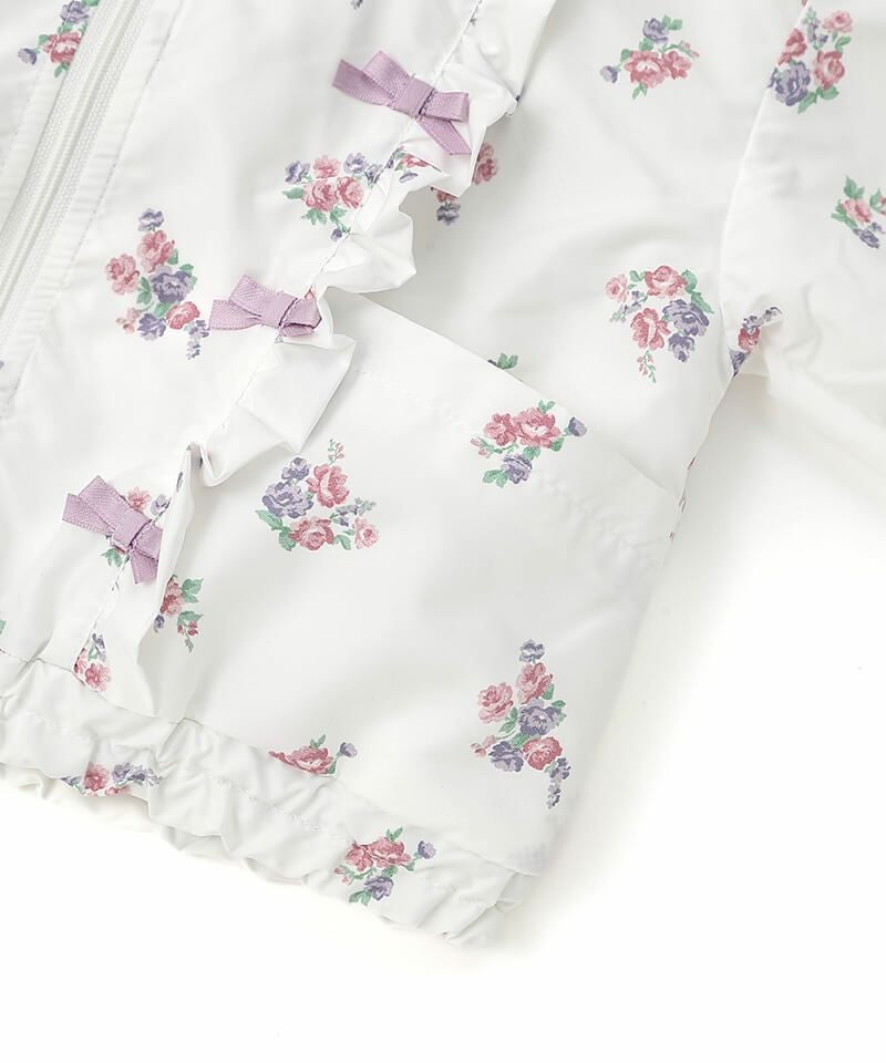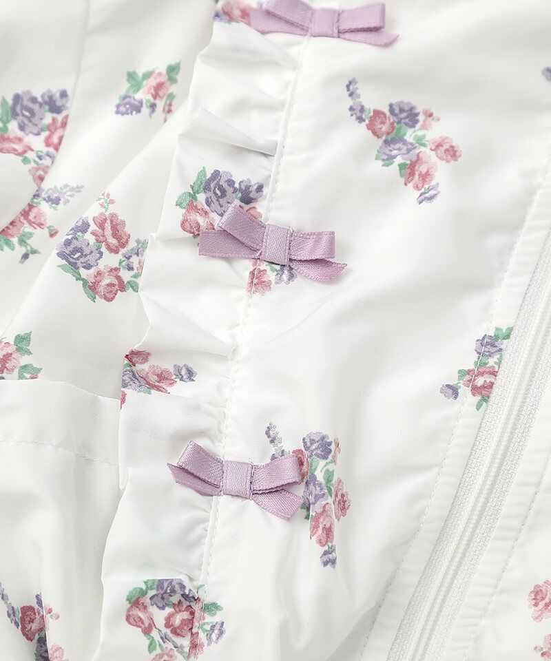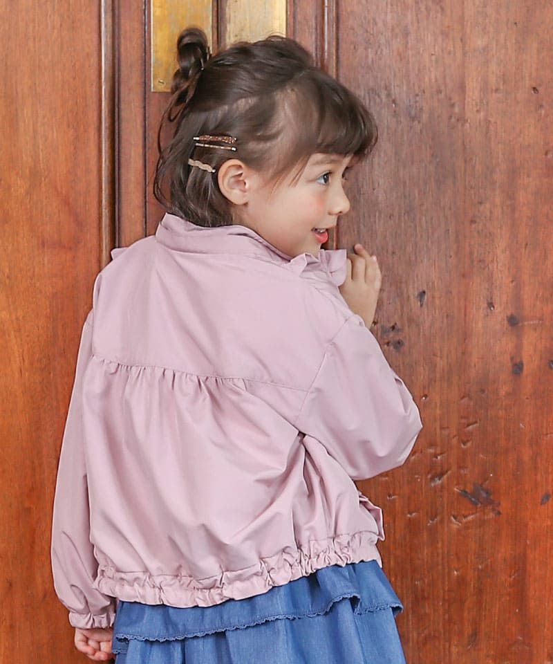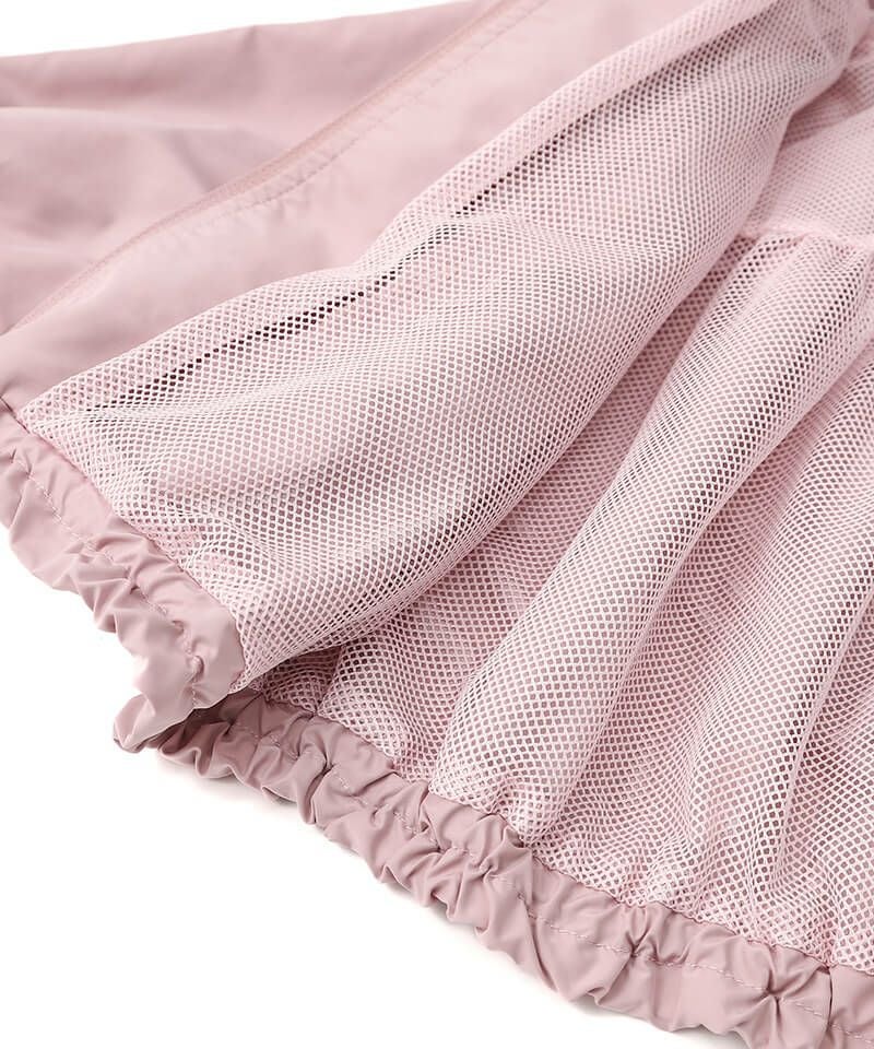 デイリーにはマストな、撥水加工とフード取外し仕様が嬉しいウィンドブレーカーです♪たっぷりのフリルとリボンをあしらい、ガーリーなムードのまま楽しめるアクティブアイテムに仕上げました♪