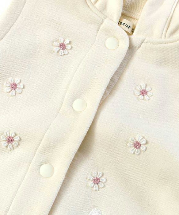 ■ブランド coeur a coeur ■アイテム ベスト ■素材 本体/綿100% 花レース部分/ポリエステル100% ソフト裏毛×カラー花レース ■サイズ 80/90/95/100
