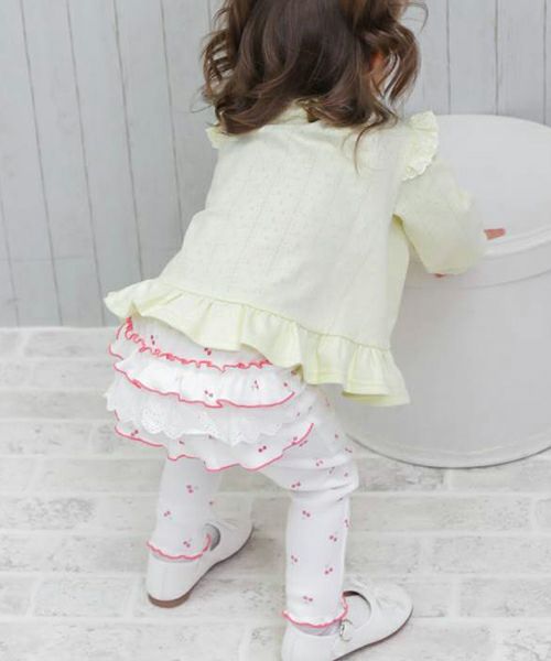 ■ブランド coeur a coeur ■アイテム スパッツ・レギンス ■素材:本体/綿94%・ポリウレタン6% レース部分/綿100% ストレッチリブテレコ×カットワークレース ■サイズ 70/80/90/100
