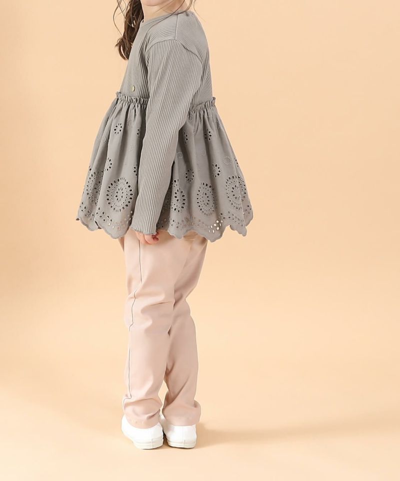 ■ブランド n.o.u.s ■アイテム ロングパンツ ■素材:本体/レーヨン76%・ナイロン21%・ポリウレタン3% ウエストフリルベルト布・リボン布部分/綿100% 2WAYストレッチ×ビエラ ■サイズ 80/90/100/110/120/130/140