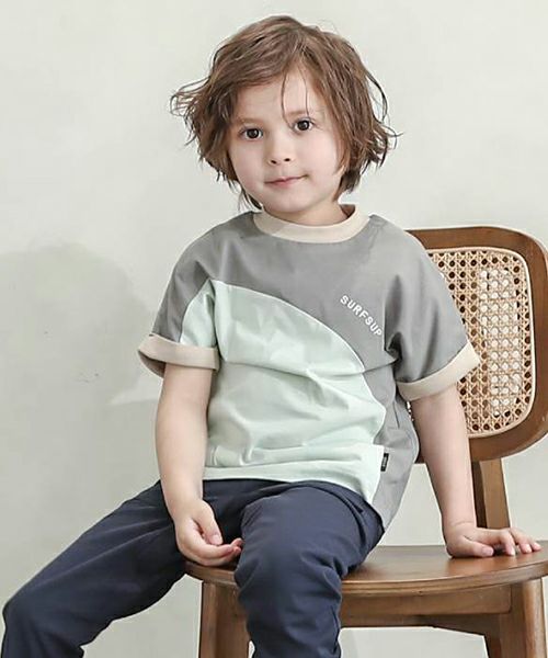 だいたんな配色切り替えがインパクト大なアイテムは、お孫さんのギフトとしてもおすすめしたい1枚です。ロールアップした袖もポイントです。