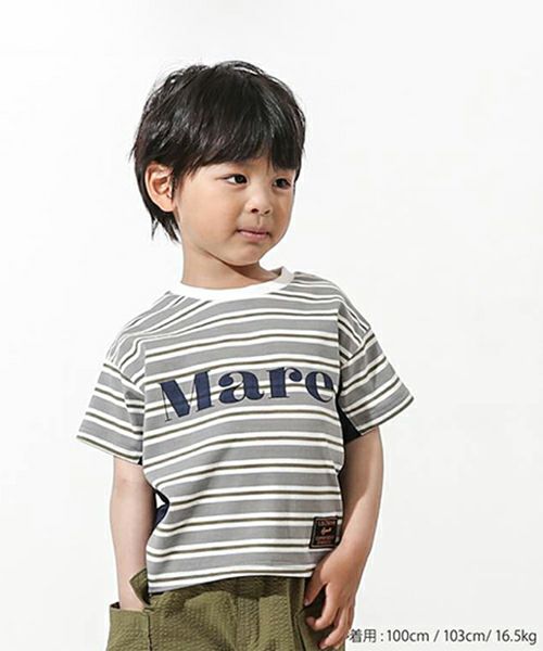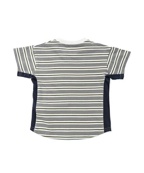 ■ブランド La Chiave ■アイテム Tシャツ ■素材 本体/綿100% 衿リブ部分/綿95%・ポリウレタン5% 脇切替部分/ポリエステル85%・ポリウレタン15% 先染めボーダー天竺×スパンフライス×メッシュ ■サイズ 80/90/95/100/110/120/130