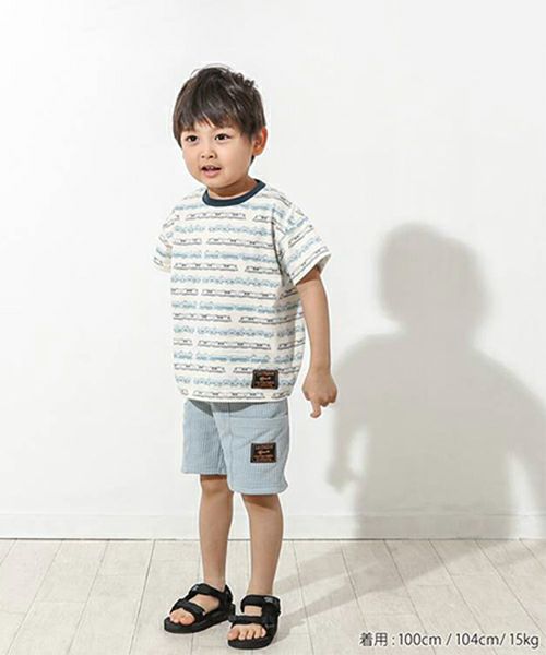 ■ブランド La Chiave ■アイテム Tシャツ ■素材 本体/綿60%・ポリエステル40% 衿リブ部分/綿55%・ポリエステル40%・ポリウレタン5% 総柄ラフィー天竺×スパンフライス ■サイズ 80/90/95/100/110/120/130