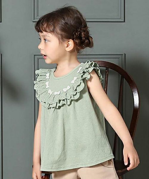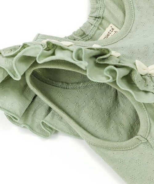 ■ブランド Biquette Club ■アイテム タンクトップ・キャミソール ■素材 本体・レース部分/綿100% 前衿ぐり・袖ぐりバインダー/綿95%・ポリウレタン5% ジャガード天竺×スパンフライス ■サイズ 80/90/100/110/120/130/140 ■洗濯表示