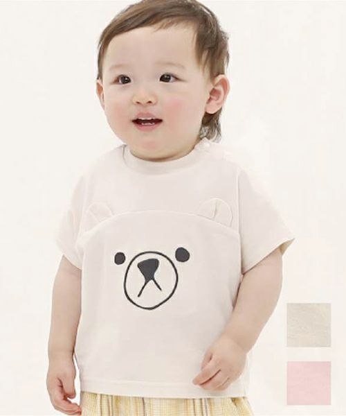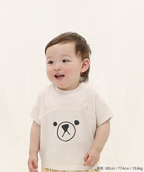 大きなクマとネコが可愛いフレンチスリーブTシャツ♪トレンド感のあるちょっとルーズなシルエットがおしゃれポイント!ベーシックカラーでコーディネートもしやすいです☆