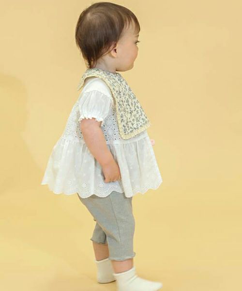 ■ブランド n.o.u.s ■アイテム スタイ ■素材 表布/綿100% 裏布/綿100% オフホワイト…飾りテープ/綿100% ピンク・ブルー…フリル布/綿62%・レーヨン38% 先染めボーダー天竺×パイル ■サイズ ベビー ■洗濯表示