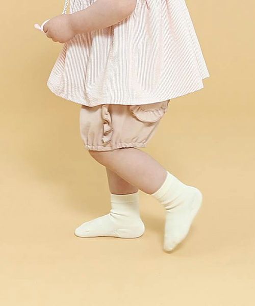 ■カラー展開:クリーム/ピンク ※お名前タグ付き ※後ろにポケットがあります。 モデル身長:78cm / 着用サイズ:80size ※画面上の色はブラウザや設定により、実物とは異なる場合がございます。