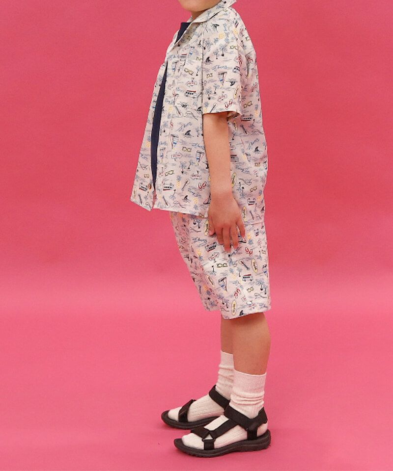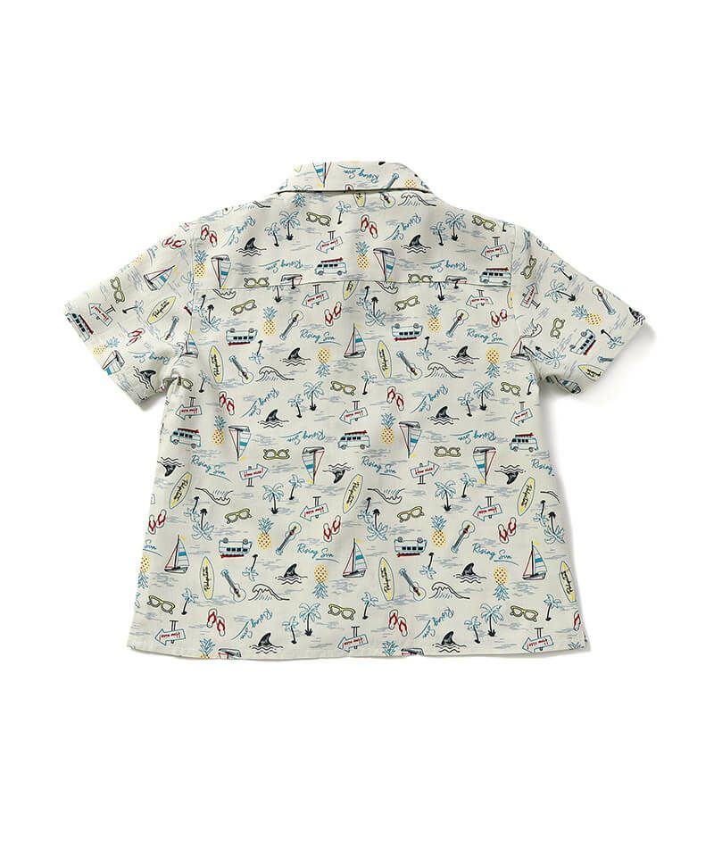 ラフなサインペンイラスト風タッチが絶妙なアロハシャツ。同柄のパンツとのセットアップもオススメ◎