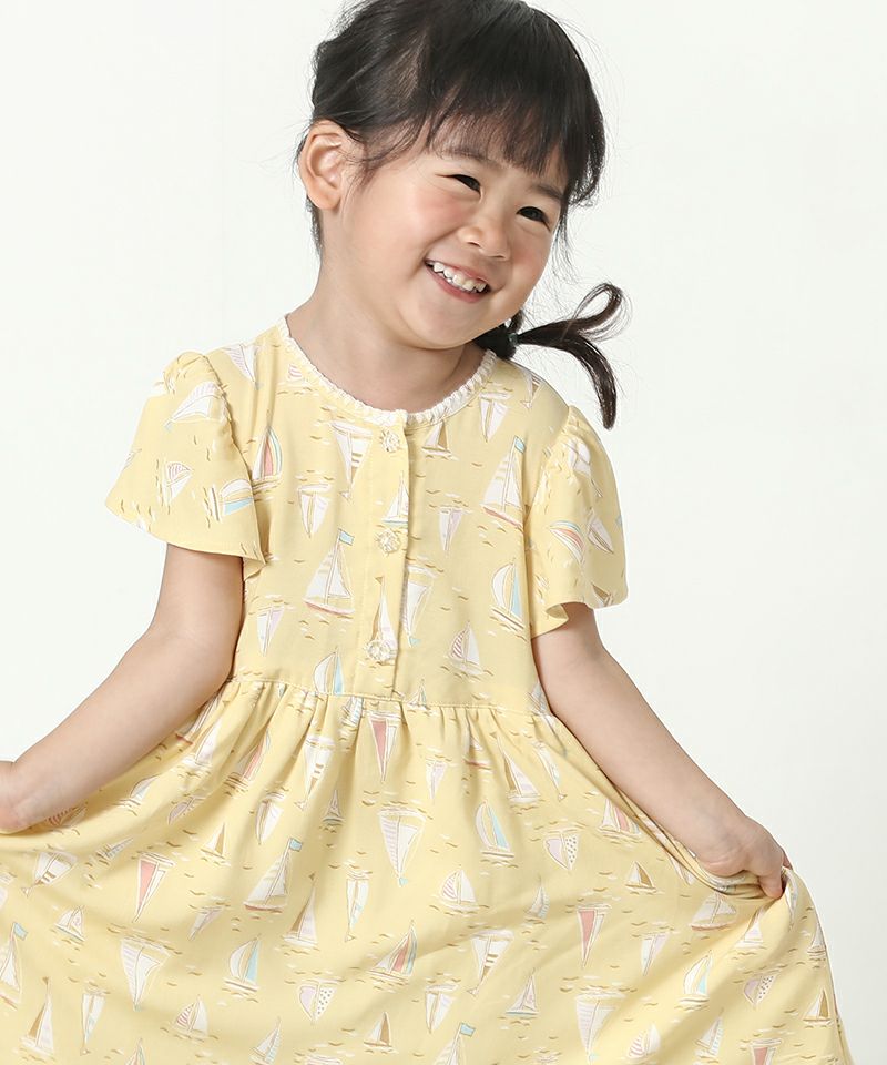 ■カラー展開:イエロー/ピンク ※全サイズ前あき(ボタン) モデル身長:92cm / 着用サイズ:90size / イエロー モデル身長:92cm / 着用サイズ:93.5size / ピンク ※画面上の色はブラウザや設定により、実物とは異なる場合がございます。