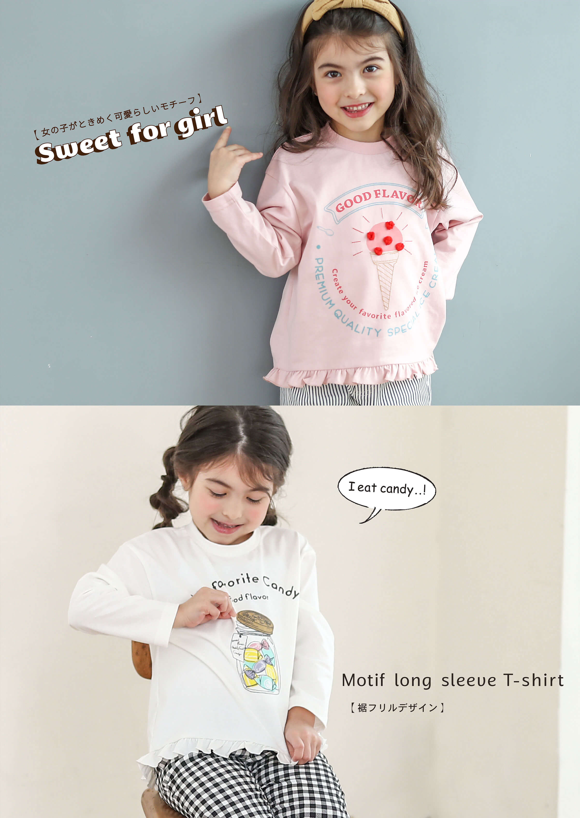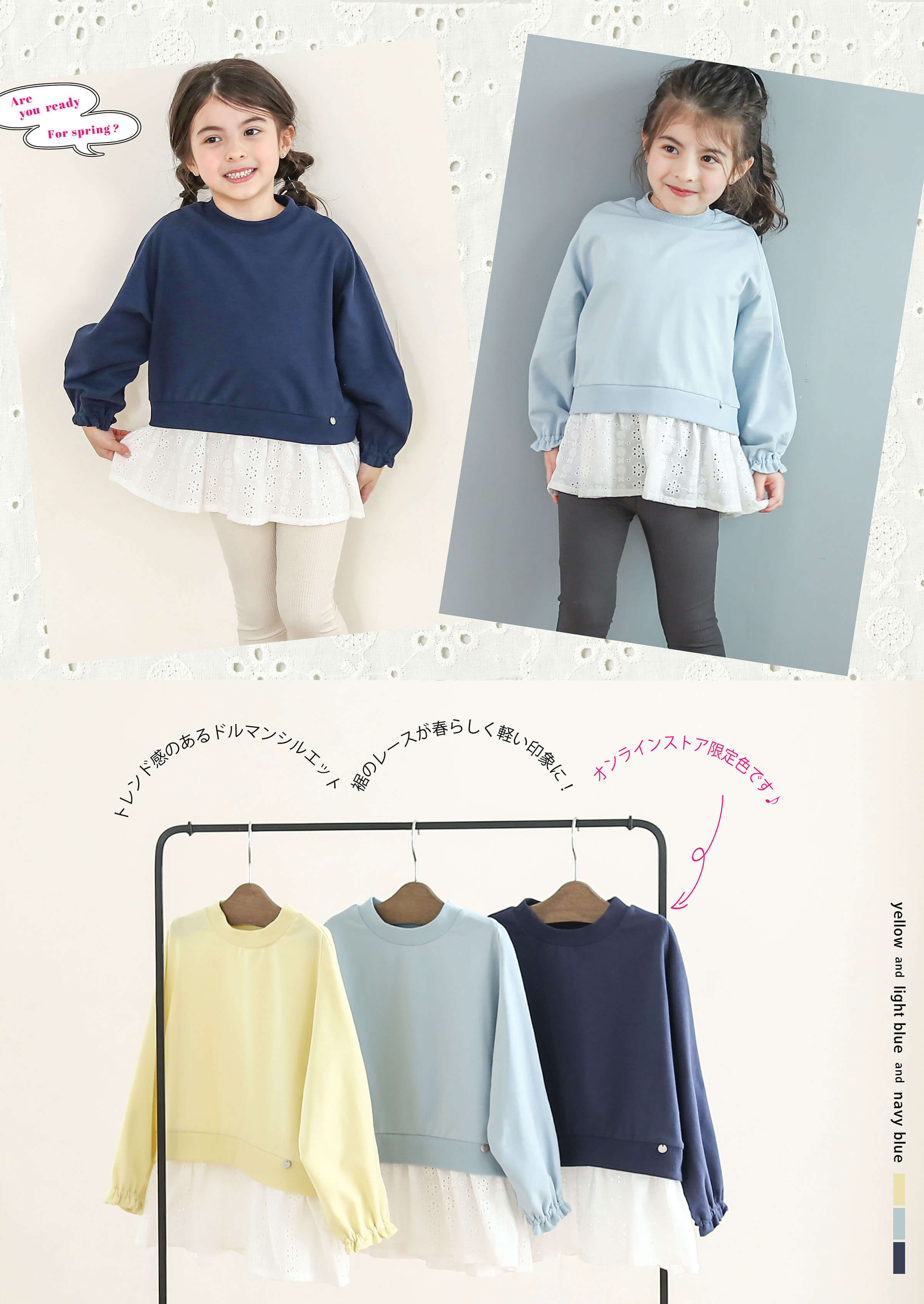スカラップ襟長袖Tシャツ¥3,300(税込)