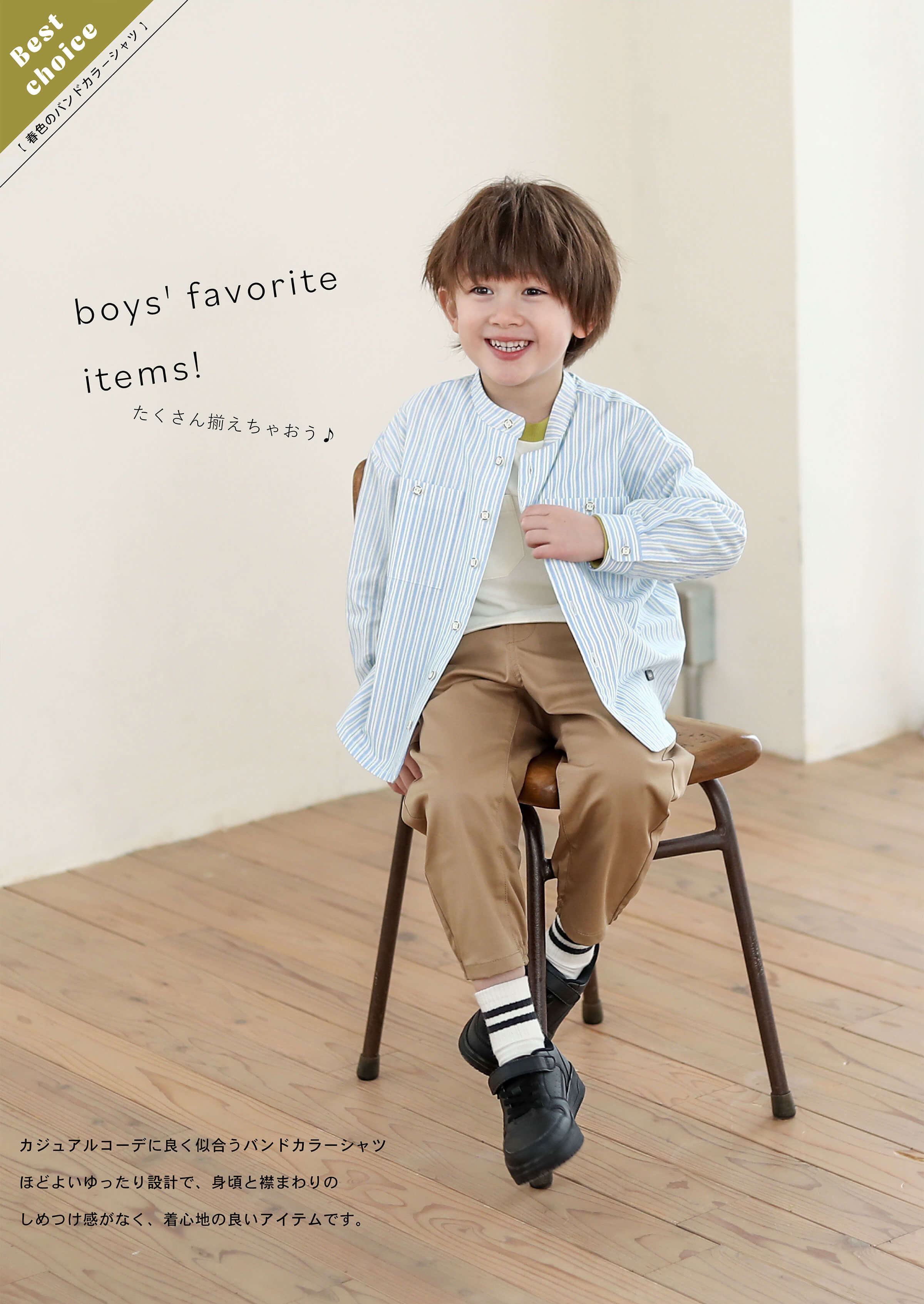 バンドカラーシャツ¥3,850(税込)
