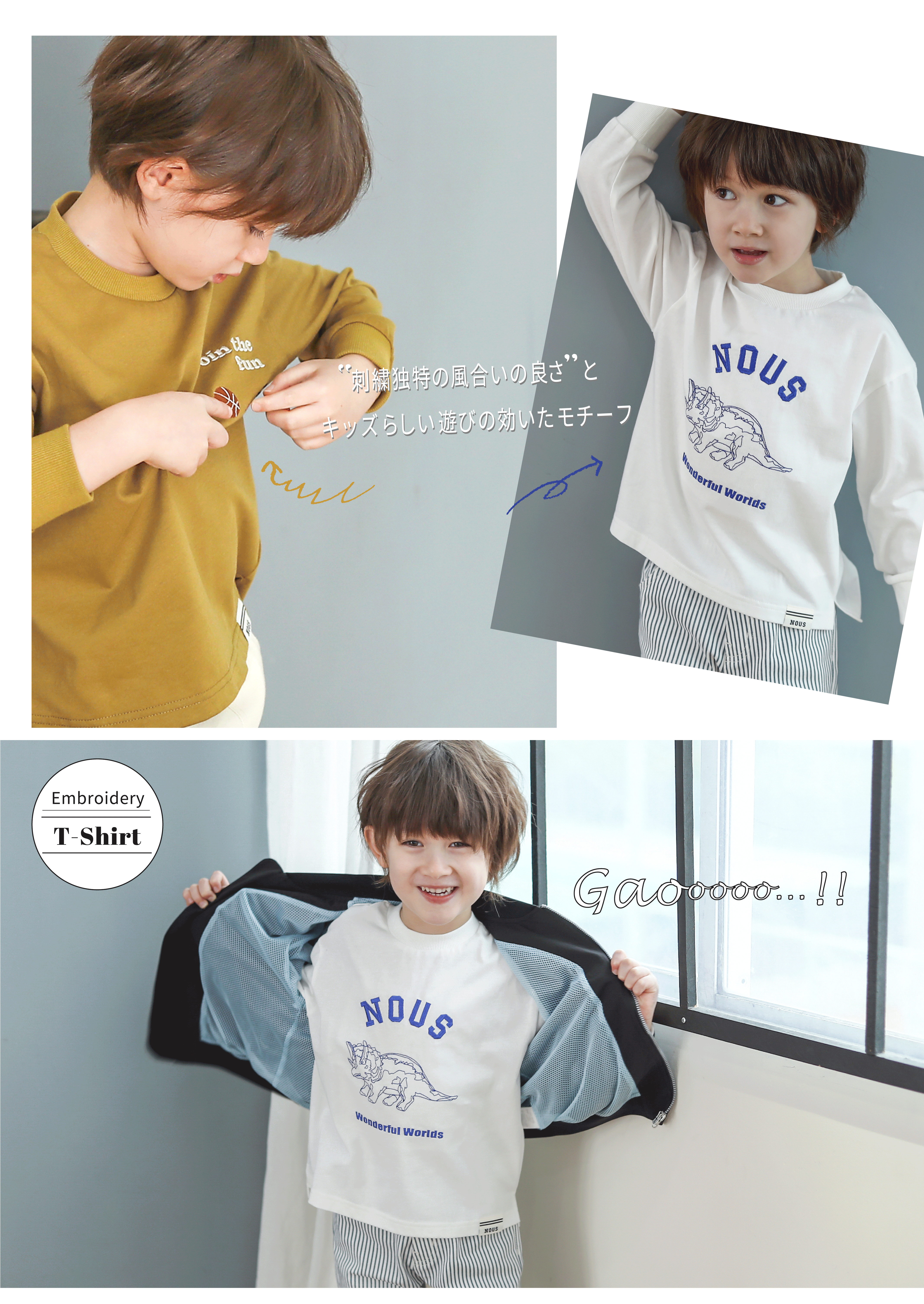 モチーフ刺繍長袖Tシャツ¥3,300(税込)