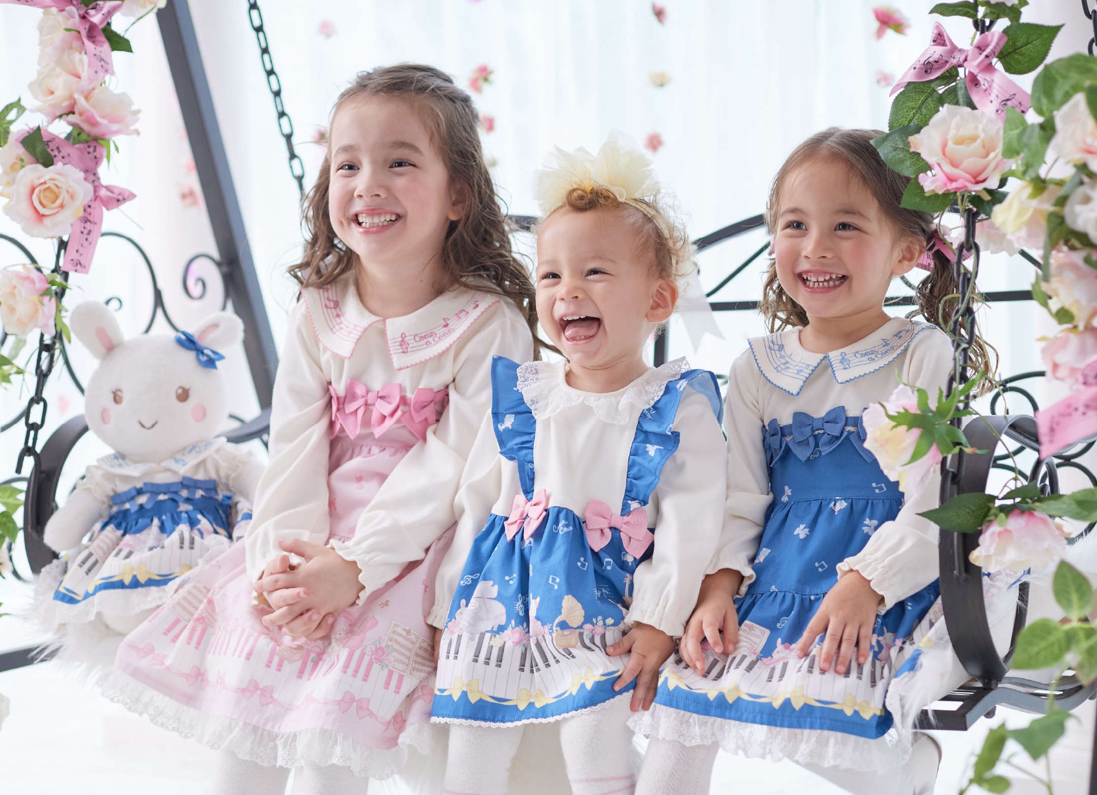 そっと扉をひらけば、小さな音楽の魔法の部屋。 ピアノやバイオリンの音にのって うさぎちゃんとのおしゃべりも弾んじゃう♪ とっておきのドレスで、今日はあなたも特別なゲストに