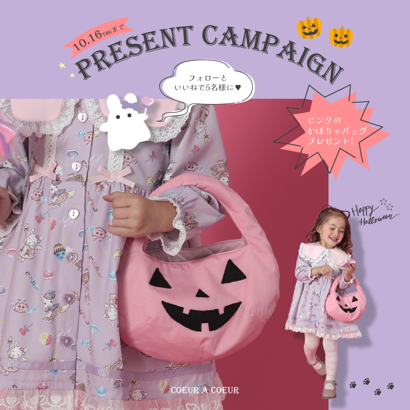 インスタグラムフォロー&いいねで、ピンクのかぼちゃバッグを5名様にプレゼント!