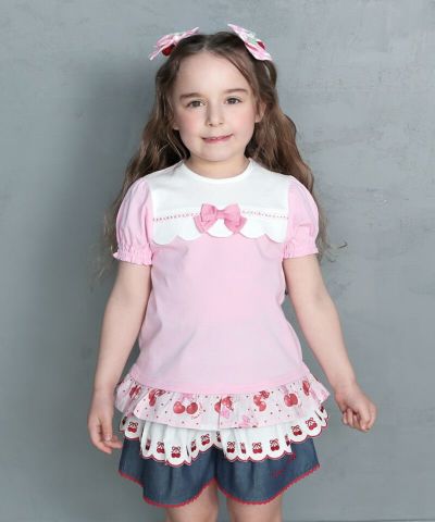 スカラップ大好きなので本当に素敵なデザインだと思います! 裾のオリジナル生地のフリルもかわいいので、長めのパンツ合わせる方が好きです(*^^*)