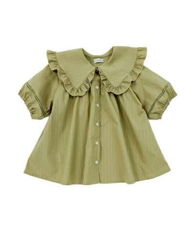 こういった、少し長めの袖のある半袖は、真夏以外の時期に重宝するのでひとつはもっておきたいと思って購入しました。 色はくすみカラーで、デザインはとっても可愛らしいので、バランスが取れています。大きめサイズから着られそうなので、長く着られそうです。