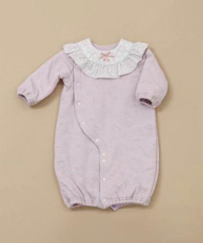 くすみ系のパープルで 可愛らしい色合いです。肌触りは 勿論 やわらかく、着せるのが楽しみです。