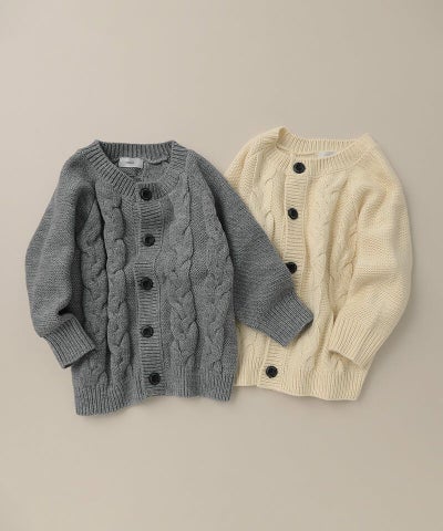 80cmの息子に90サイズのグレーを購入しました。お袖も1回折る程度で丈も長めですが、カーディガンなので大きめをあえて着せる感じも可愛いなと思います。 生地がしっかりしており、ケーブル編みの部分も可愛くて買って良かったです。