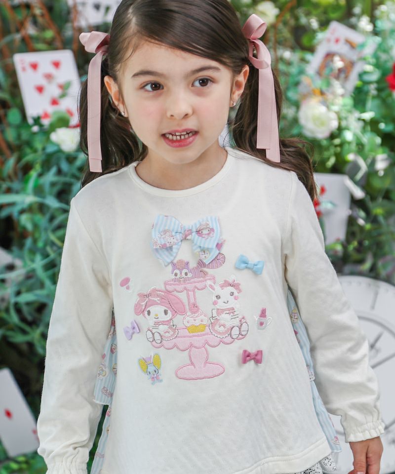 表の柄とリボン、後ろのフリルととても可愛い1枚です。 袖がゴムなので、お食事のときに簡単にまくっておけるのも嬉しいです。 -