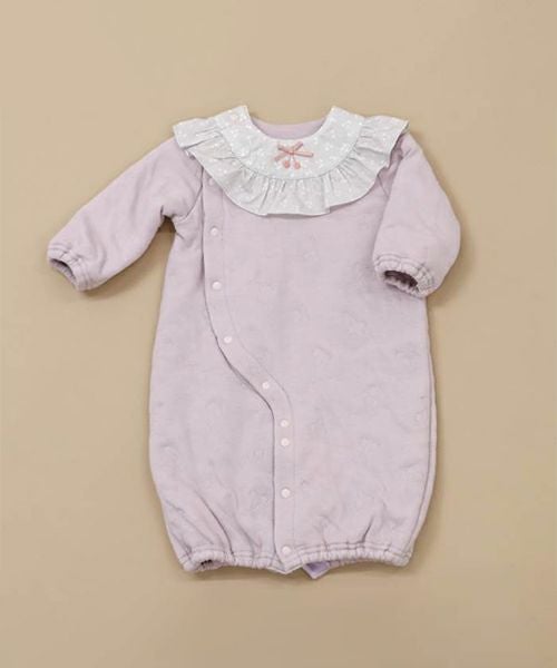 くすみ系のパープルで 可愛らしい色合いです。肌触りは 勿論 やわらかく、着せるのが楽しみです。 -