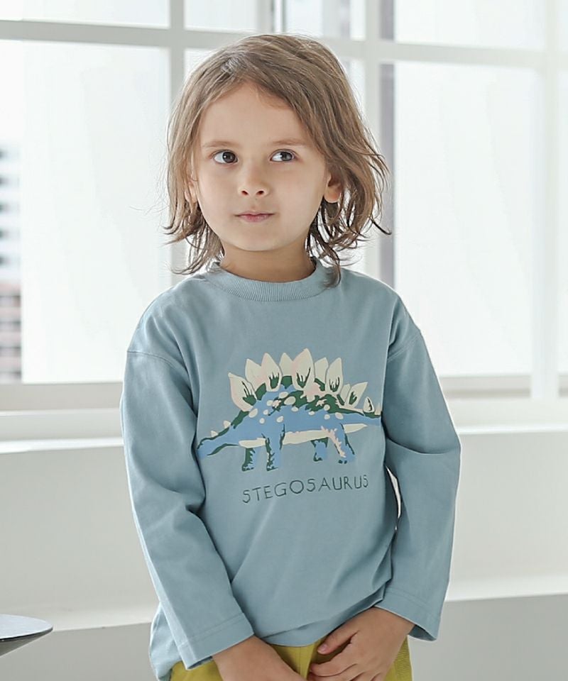 恐竜って子どもっぽいデザインが多いけど、これはデザインも色味も落ち着いていて良い感じ。  柔らかく着やすそうなのに生地がしっかりしていて、洗濯してもデロデロにならない。 ゆったりめなので、ぴったりサイズがおすすめ。
